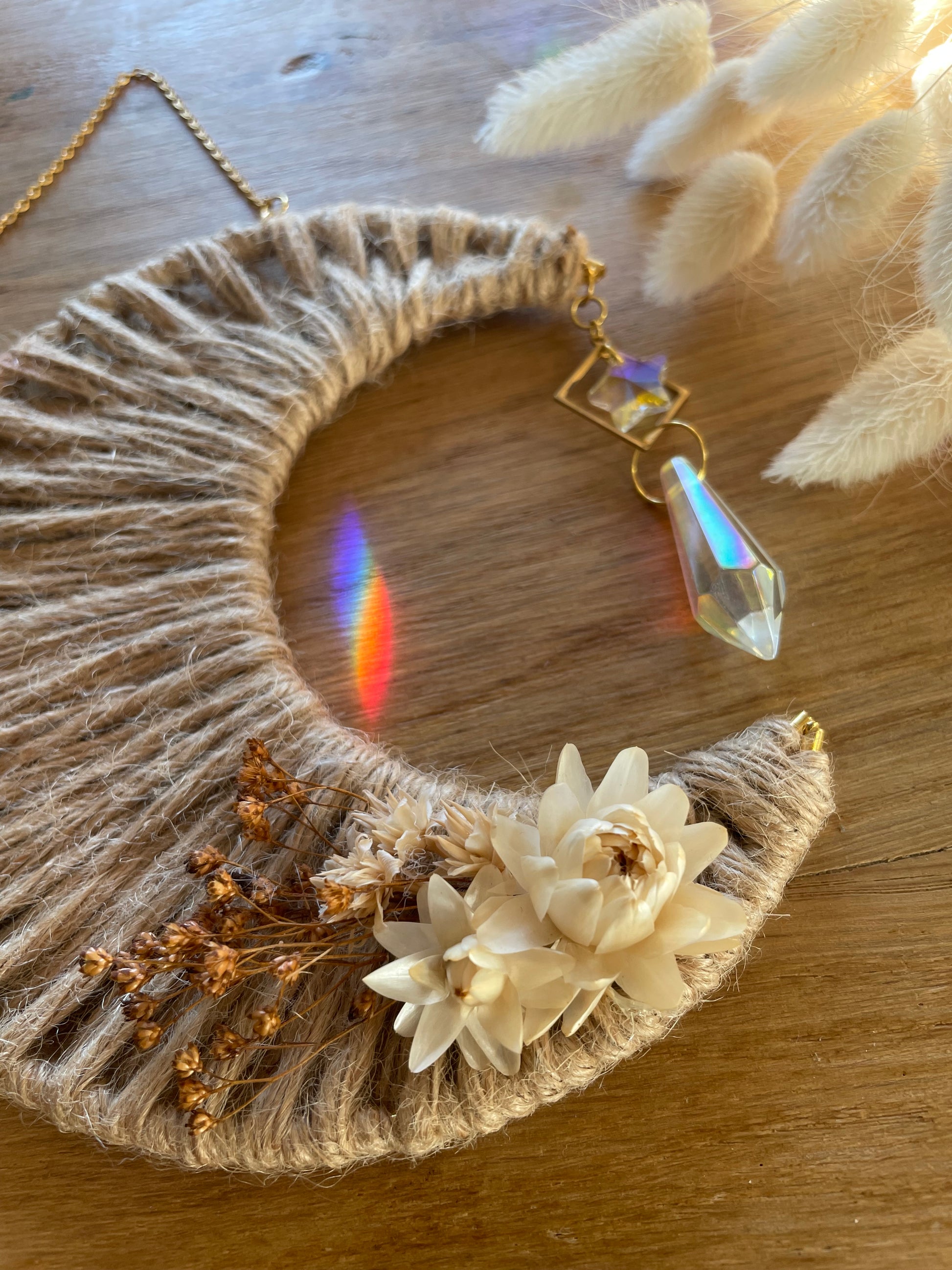 Attrape-soleil artisanal Yona | macramé Lune jute Fleurs séchées