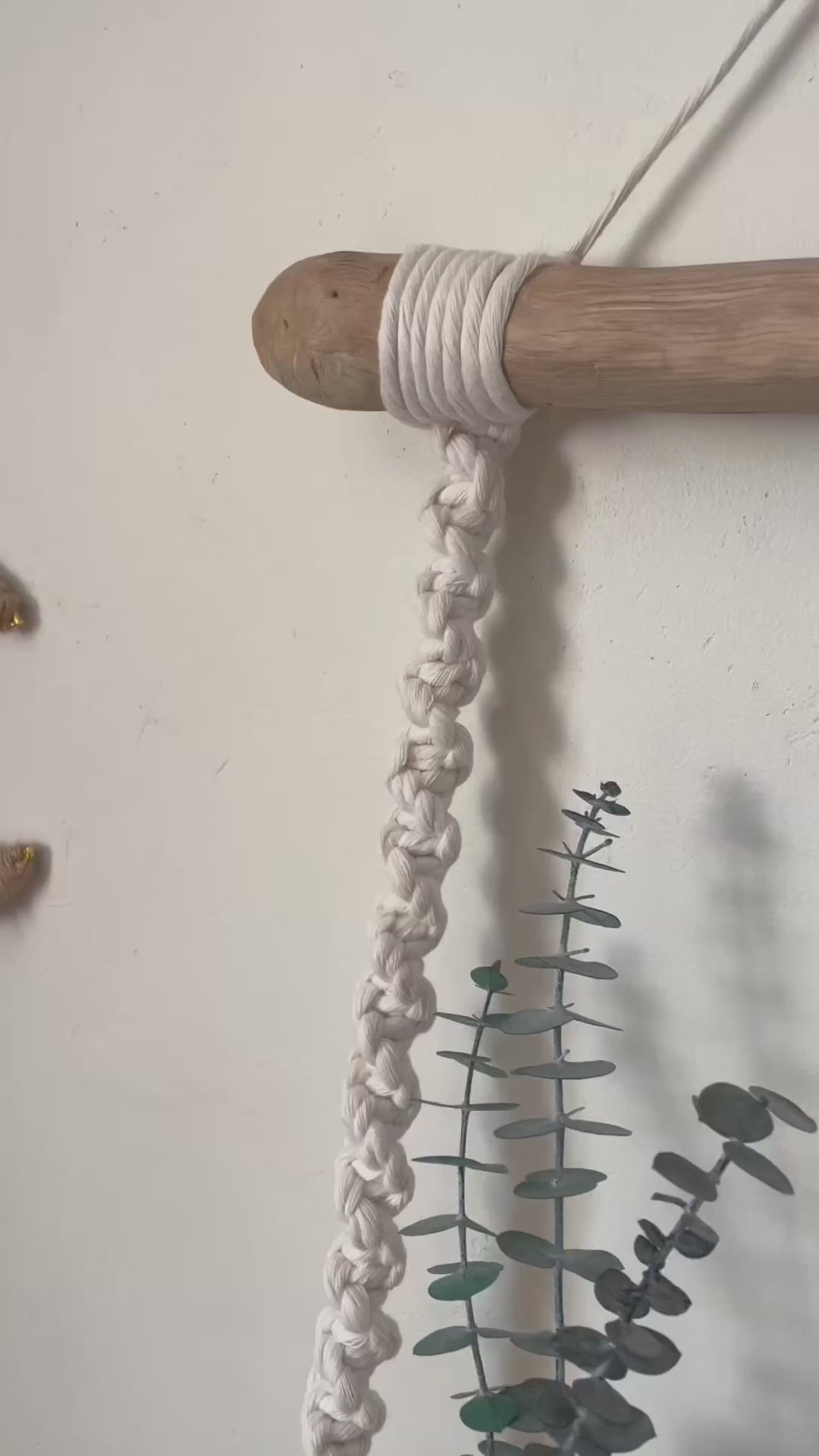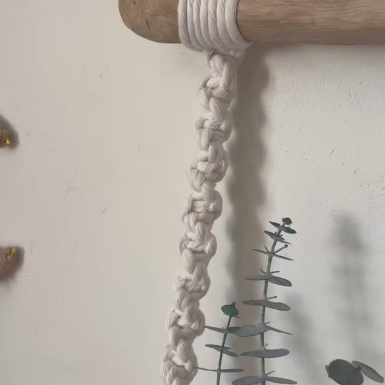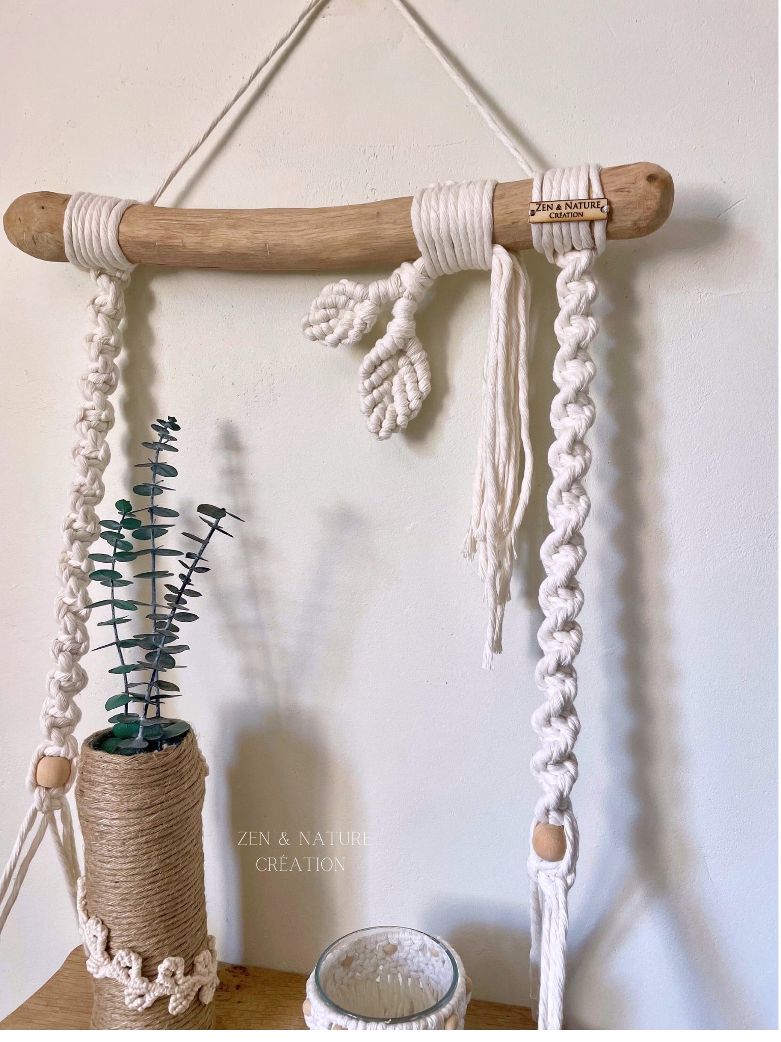 Détail raffiné : feuillage décoratif tissé en macramé apportant un effet végétal stylisé.